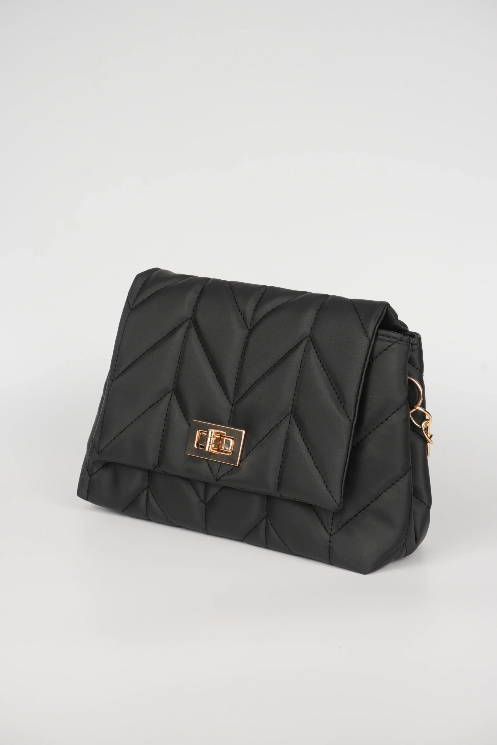 Siyah Şık ve Zarif Gold Kilit Kapaklı Askılı Omuz Çantası