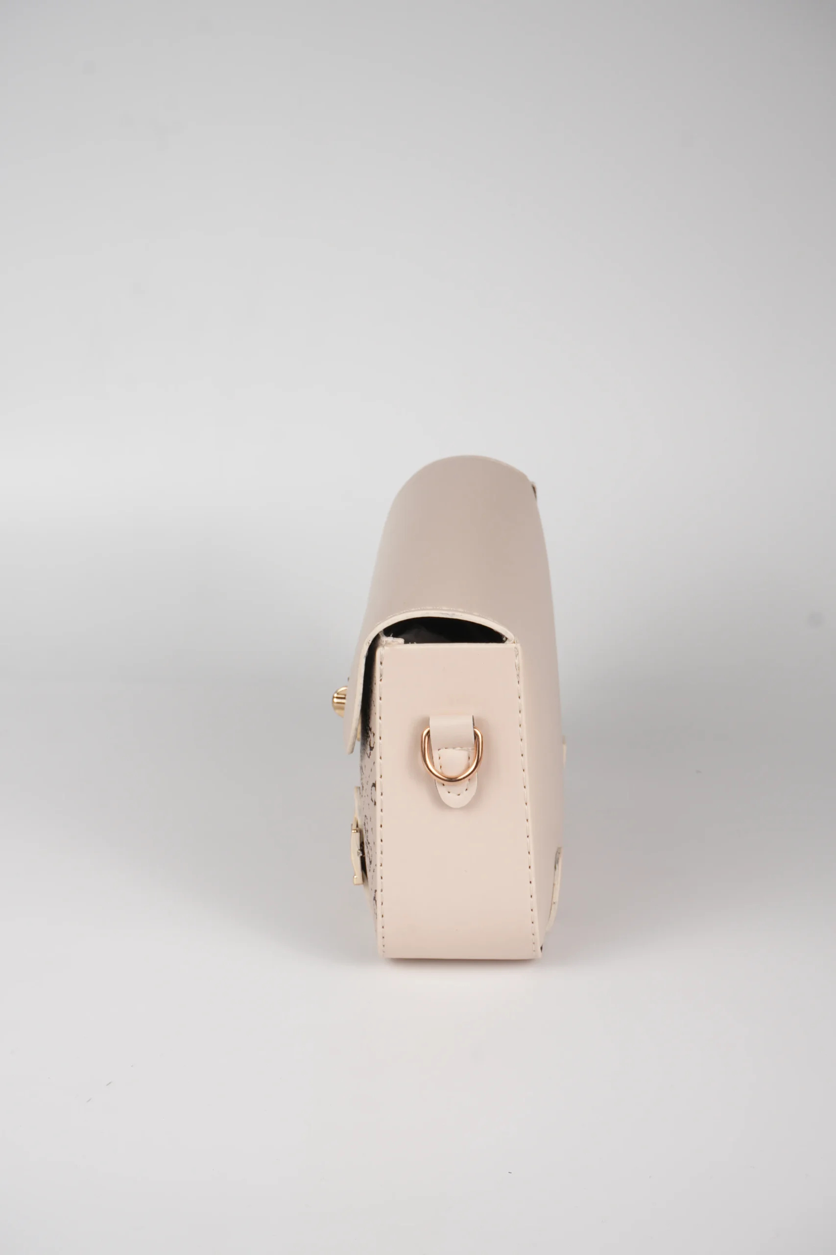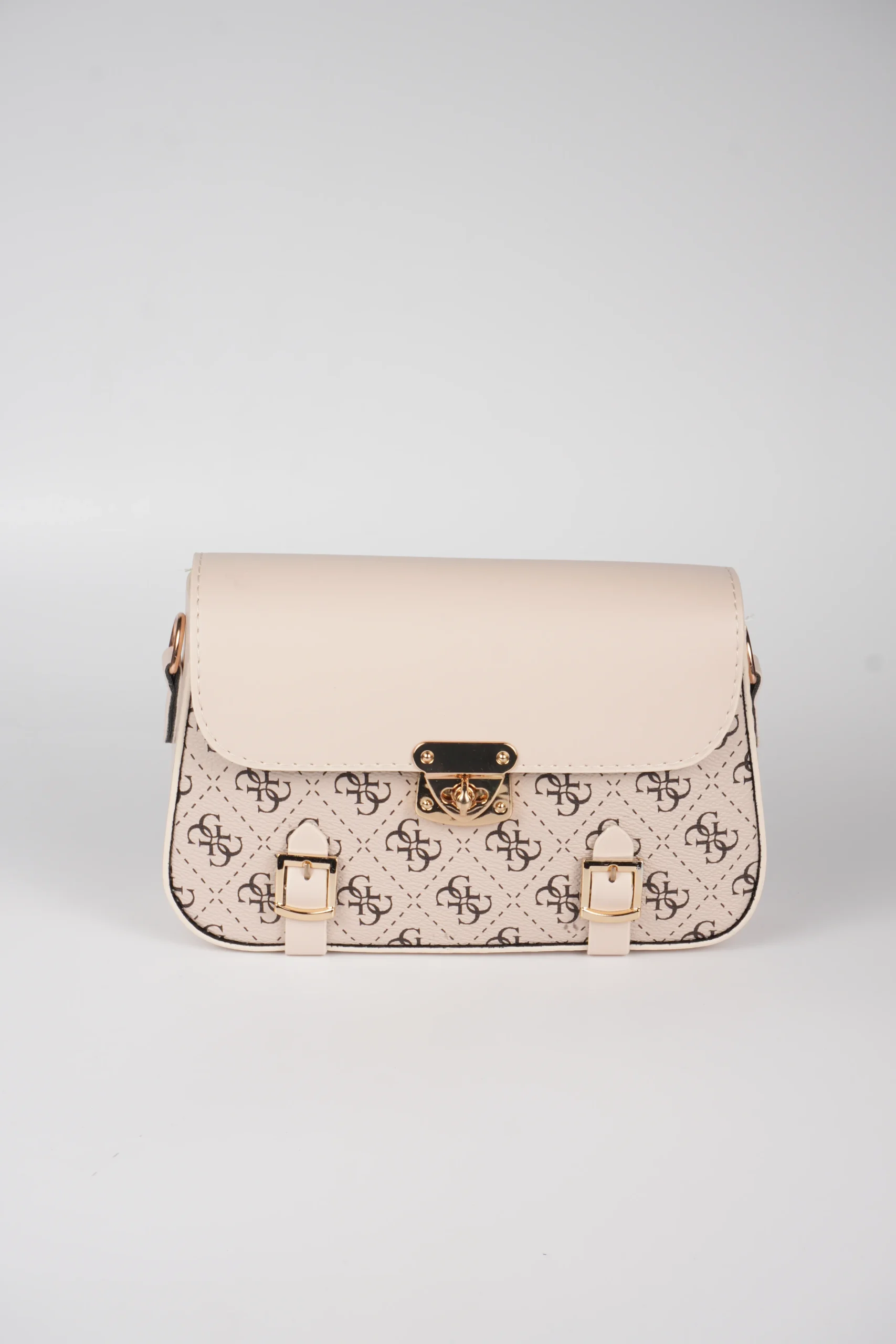 Desenli Ön Yüzeyi ve Gold Metal Kilit Detaylı Omuz Askılı Çanta
