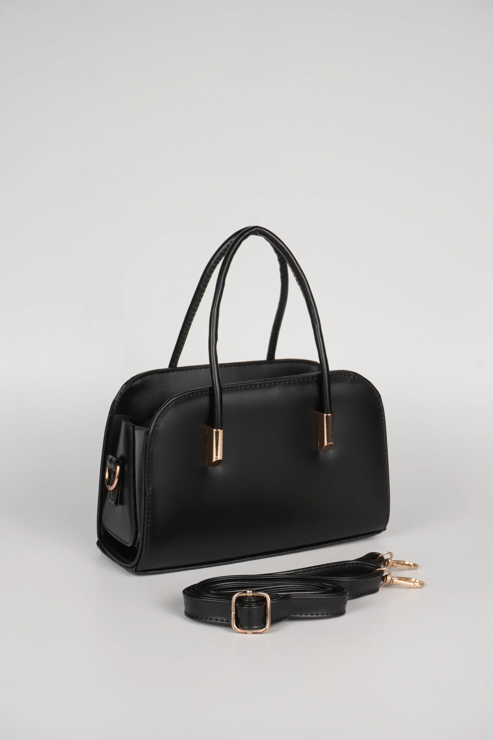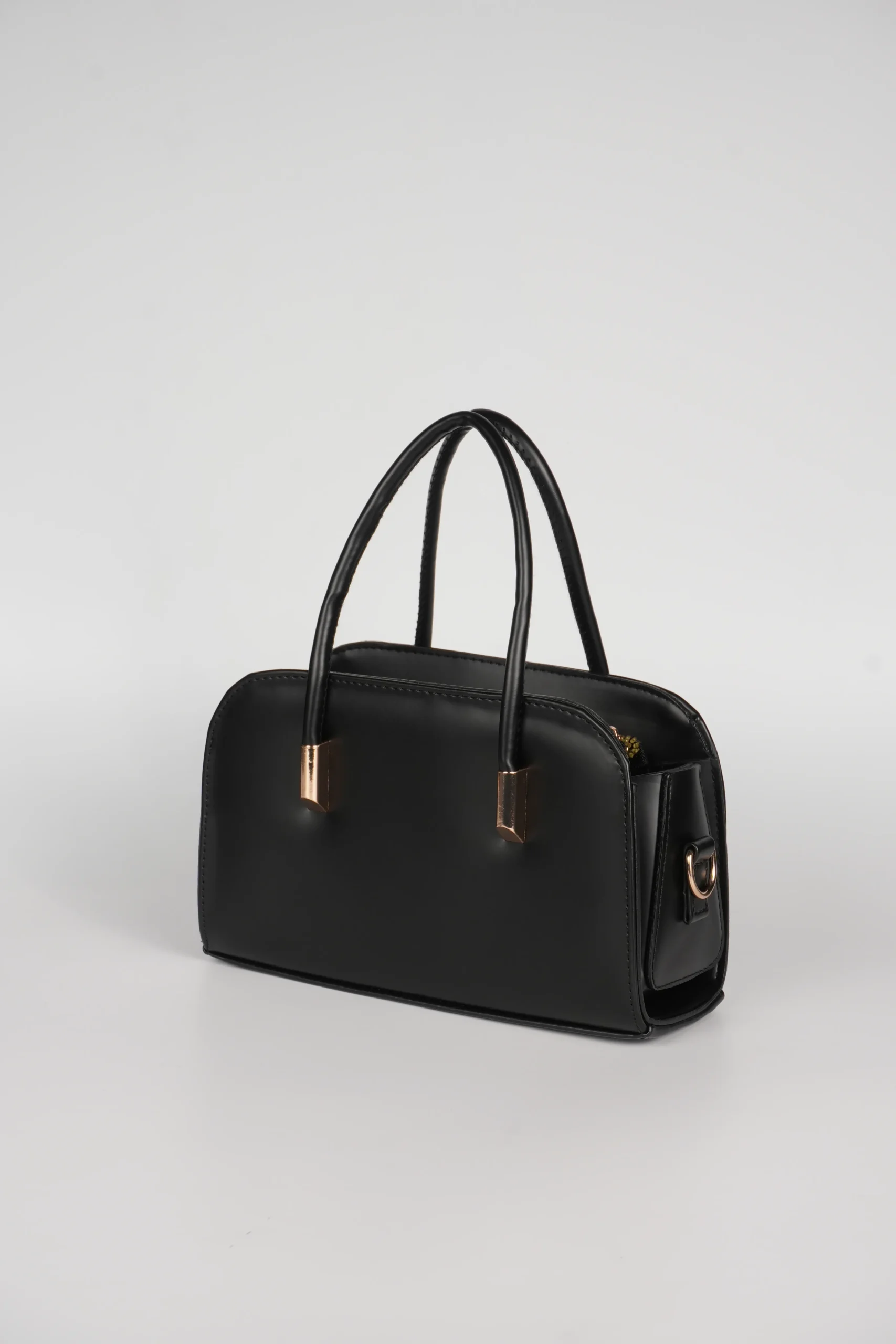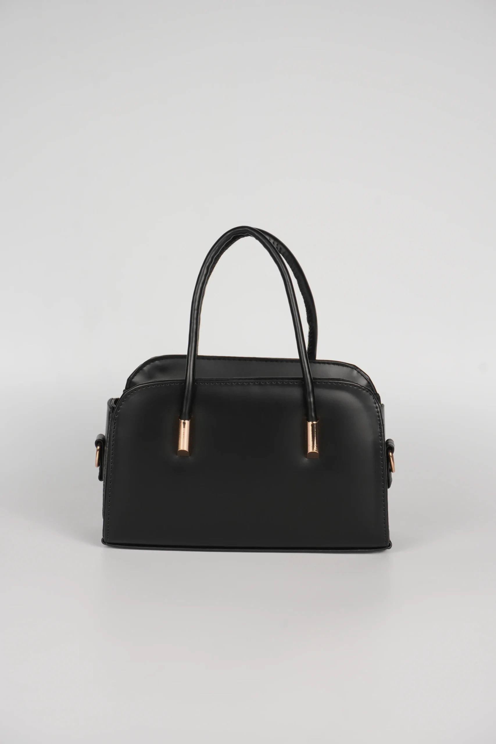 Şıklığı ve sadeliği bir araya getiren bu siyah el çantası, Kaliteli dokulu yüzeyi çantaya sofistike bir görünüm kazandırırken, çift saplı tasarımı sayesinde elde konforlu bir taşıma sunar. Zamansız tasarımı sayesinde modası geçmeyen bir stil sunan bu model, hem klasik hem de modern kombinlerle kolayca uyum sağlar.