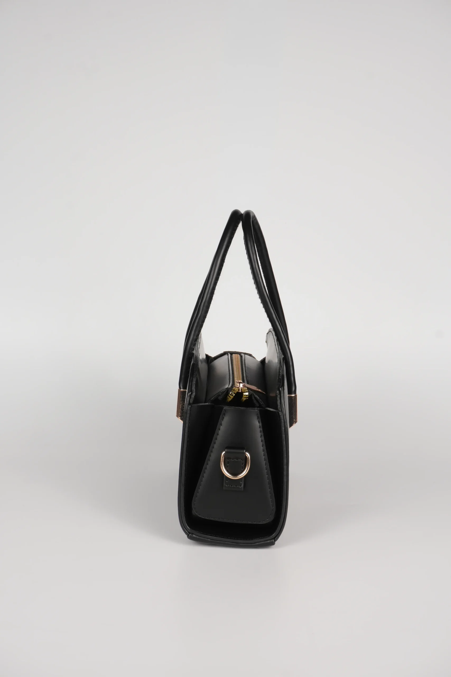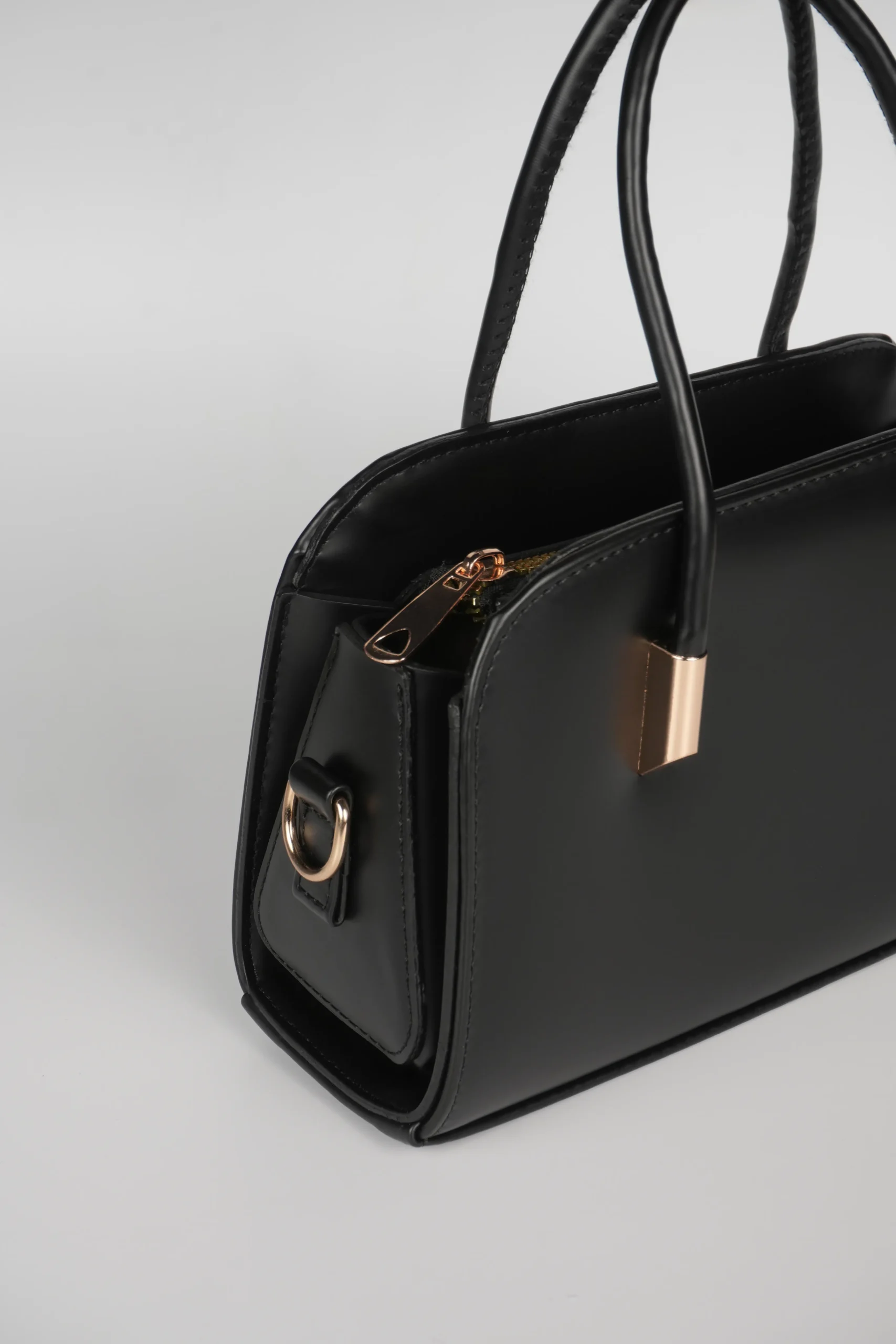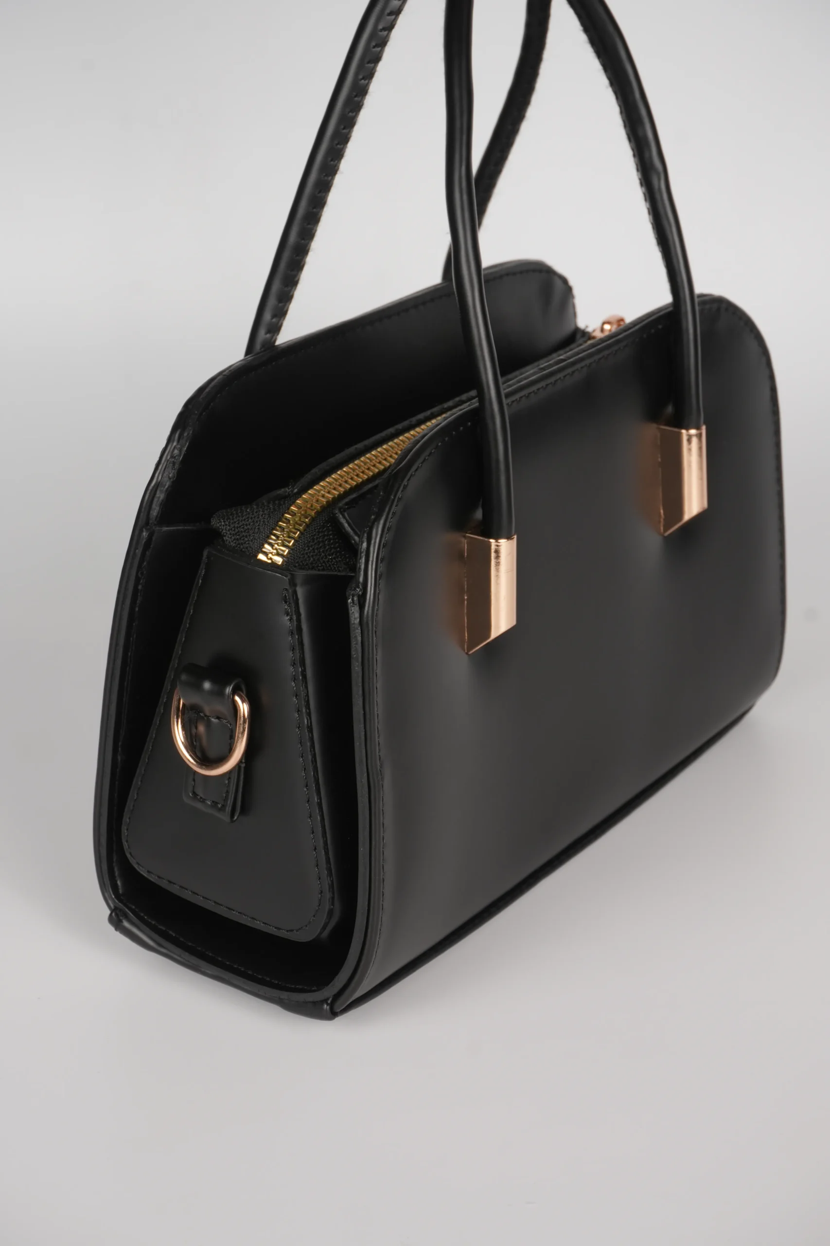 Şıklığı ve sadeliği bir araya getiren bu siyah el çantası, Kaliteli dokulu yüzeyi çantaya sofistike bir görünüm kazandırırken, çift saplı tasarımı sayesinde elde konforlu bir taşıma sunar. Zamansız tasarımı sayesinde modası geçmeyen bir stil sunan bu model, hem klasik hem de modern kombinlerle kolayca uyum sağlar.