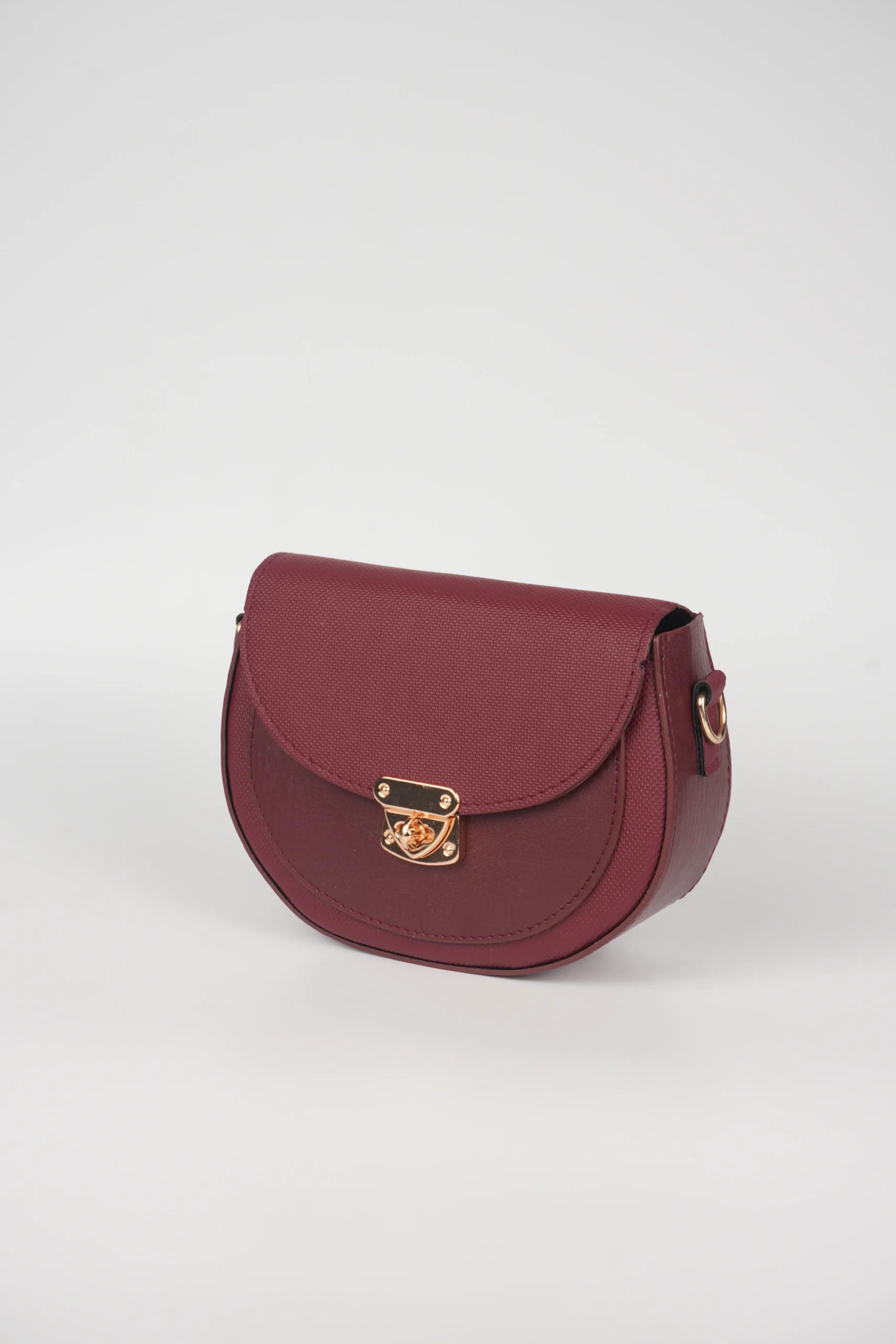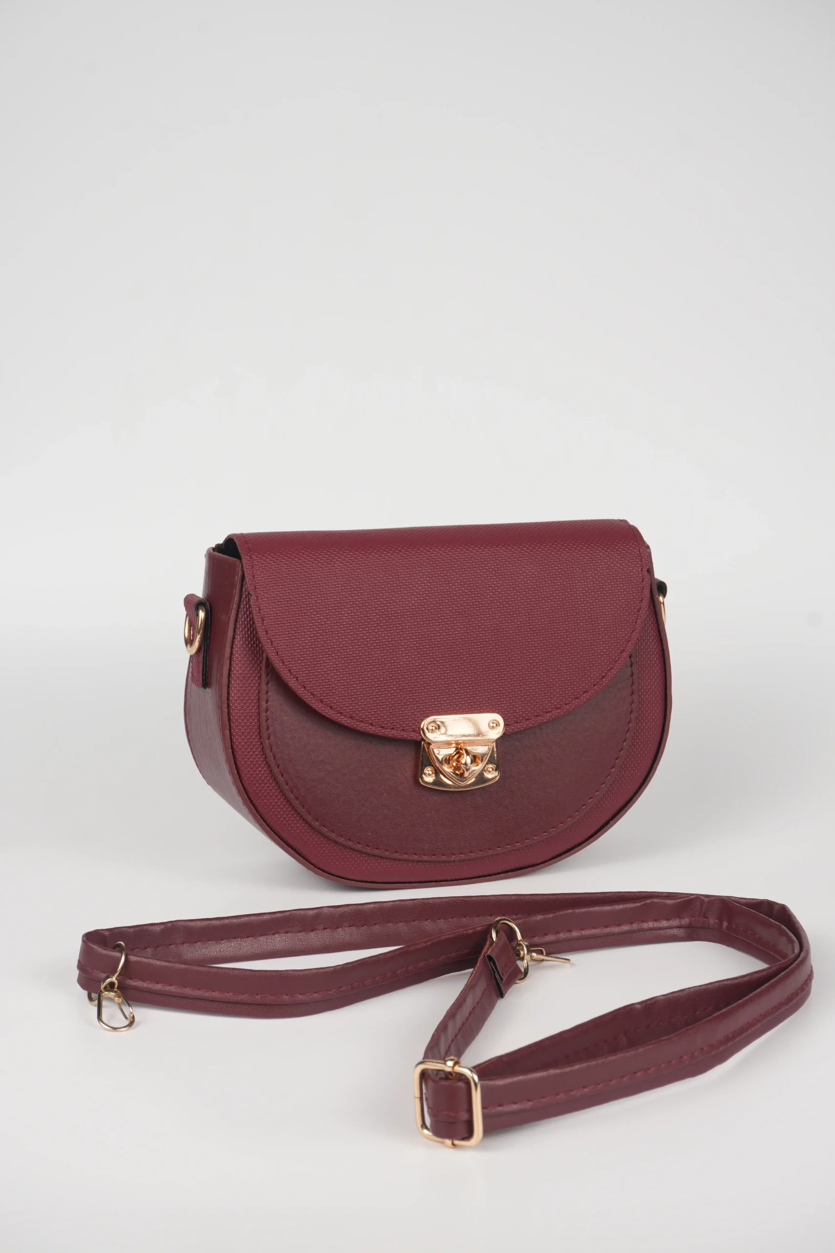 Zarif yarım ay formu ve gold metal kilidiyle öne çıkan bu omuz çantası, günlük kombinlerden özel davetlere kadar stilinizi tamamlar.