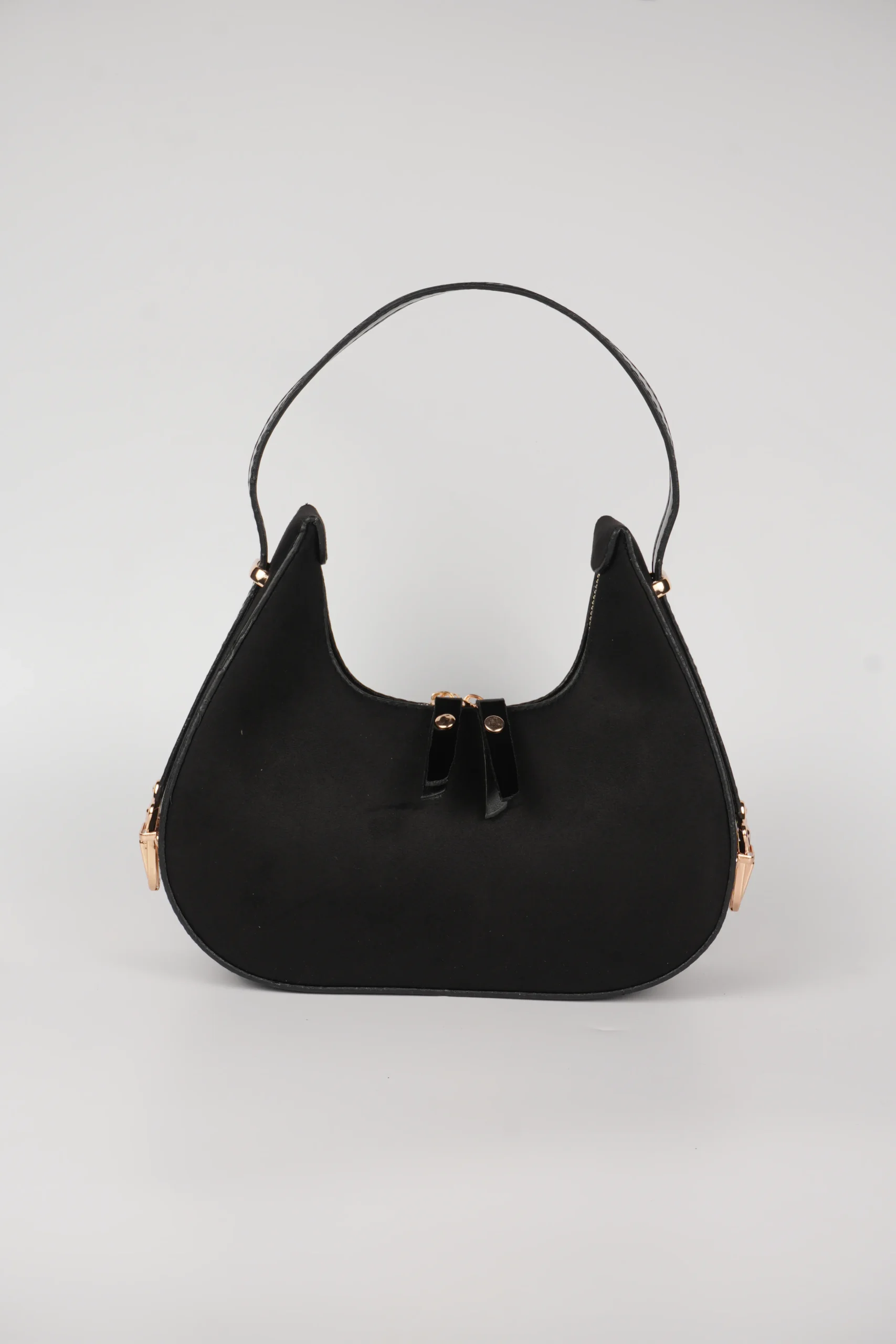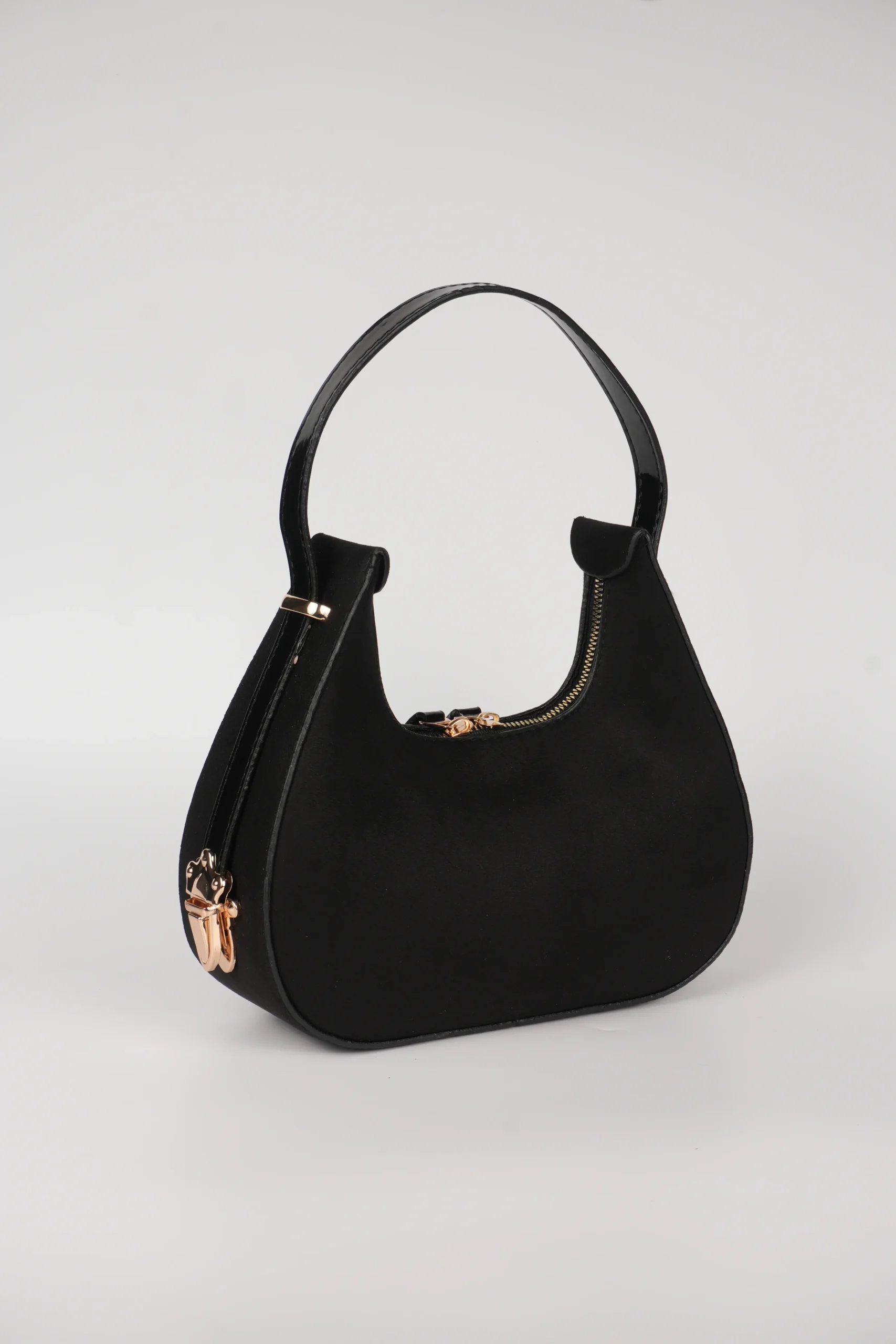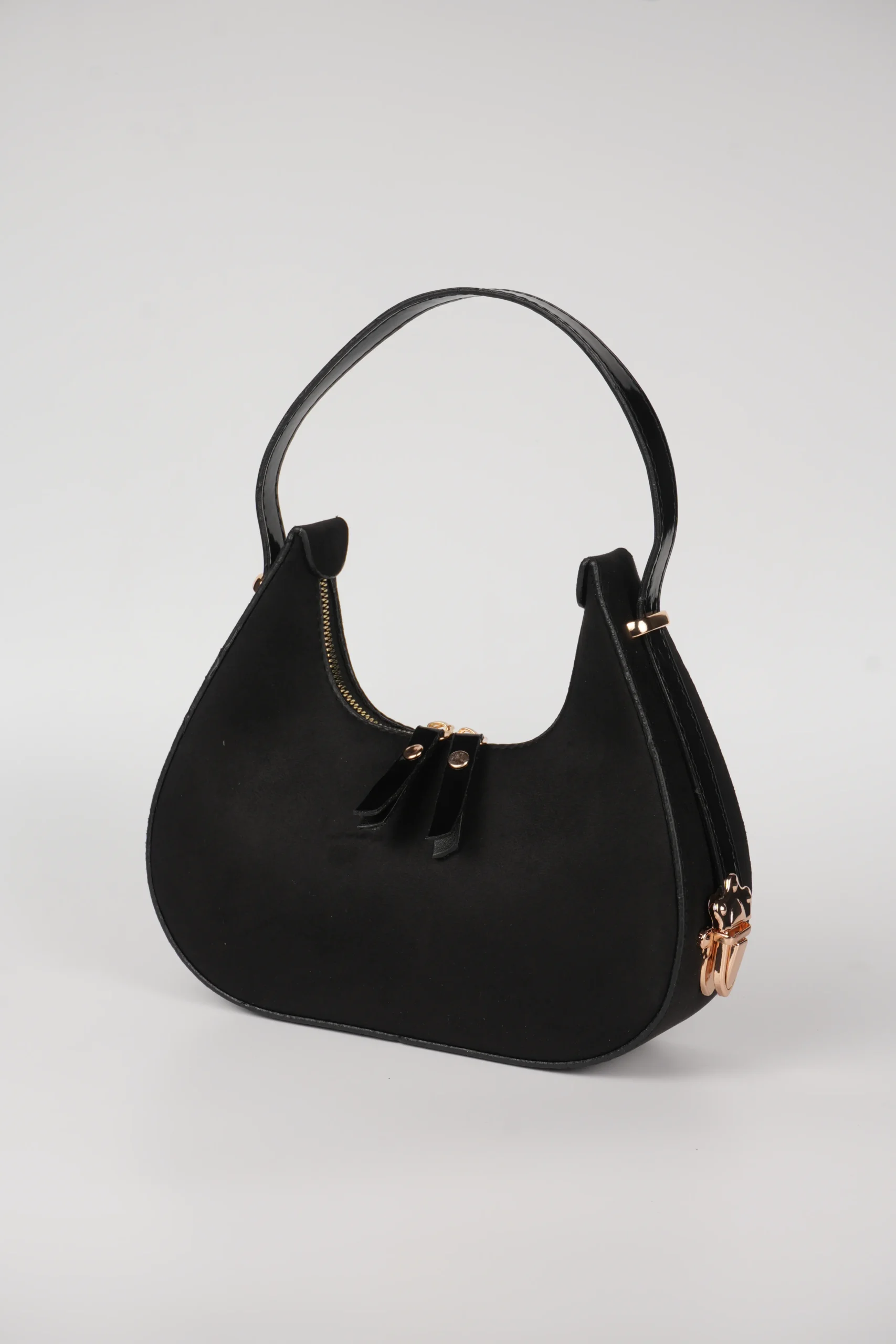Baget Çift Yön Fermuarlı Özel Kilit Askılı Süet El Kol Omuz Çantası Zarif detayları ve modern tasarımıyla öne çıkan bu kadın çanta modeli Keskin hatları ve kavisli alt tabanı sayesinde hem spor hem de şık kombinlerle uyum sağlar.