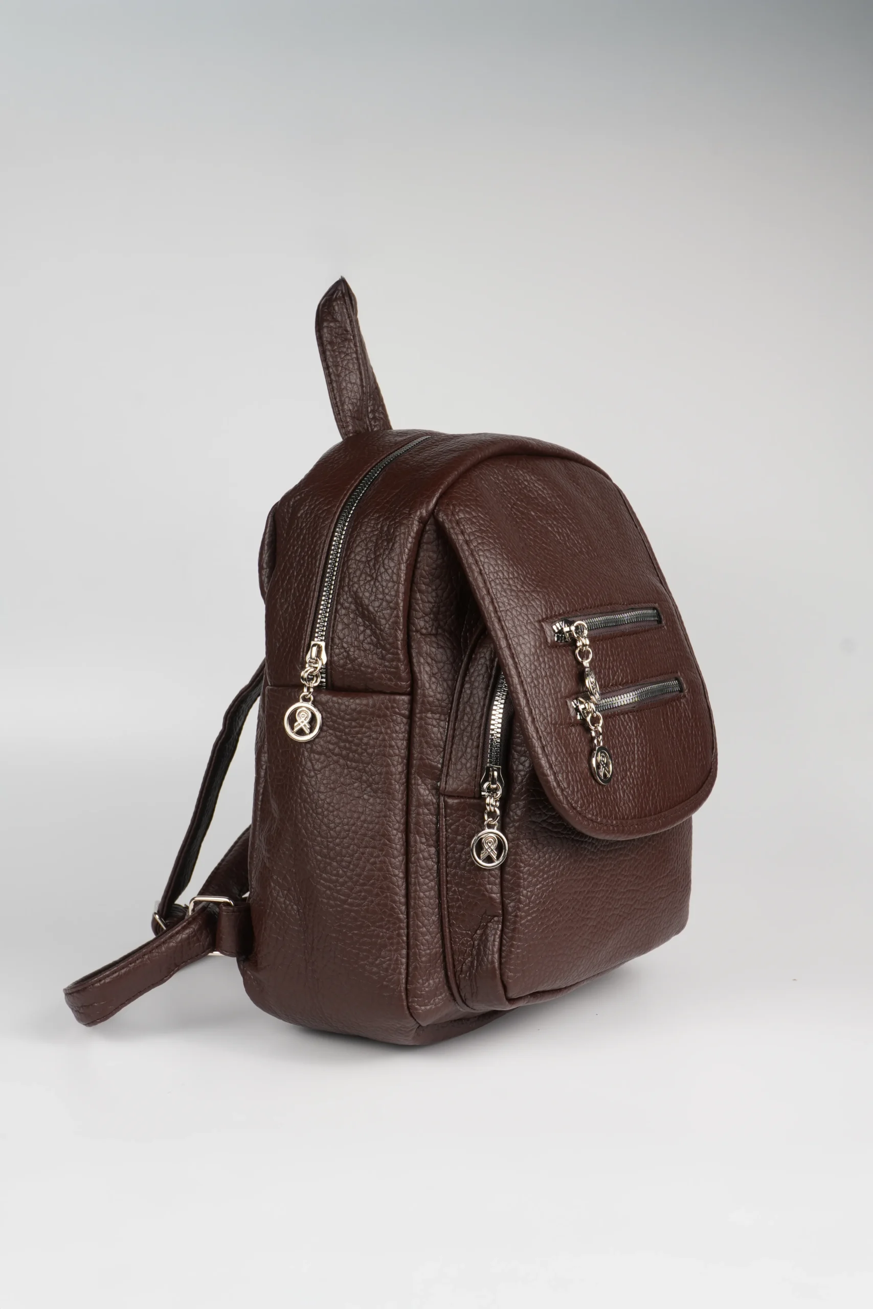 Kadın Kapaklı Fermuar Detaylı Çok Gözlü Sırt Çantası