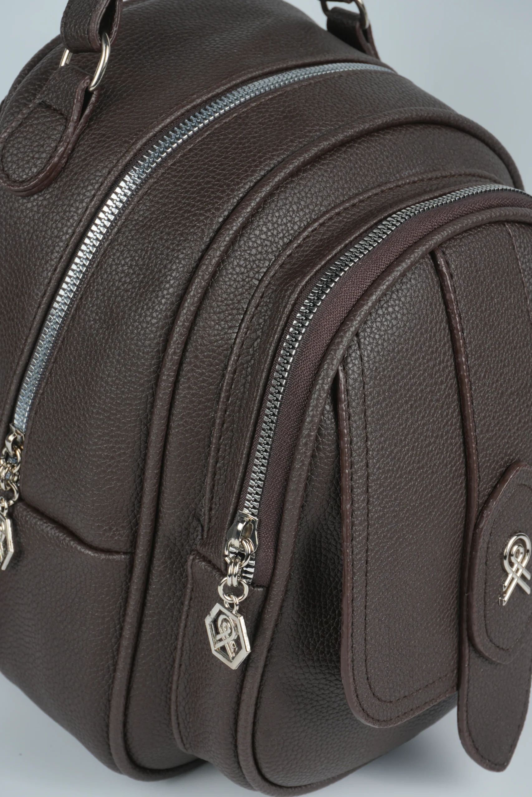 Modern tasarımı ve deri görünümlü dokusu ile öne çıkan bu sırt çantası, çok bölmeli yapısı sayesinde maksimum düzen sağlar. Geniş ana bölmesi, günlük eşyalarınızı rahatça taşımanıza olanak tanırken; fermuarlı ön bölmeler ve yan cepler ekstra kullanım alanı sunar. İç kısmında bulunan astarlı yapı, eşyalarınızı korurken pratik ve düzenli bir kullanım sağlar. Ayarlanabilir askıları ile konforlu ve ergonomik bir taşıma deneyimi sunar.