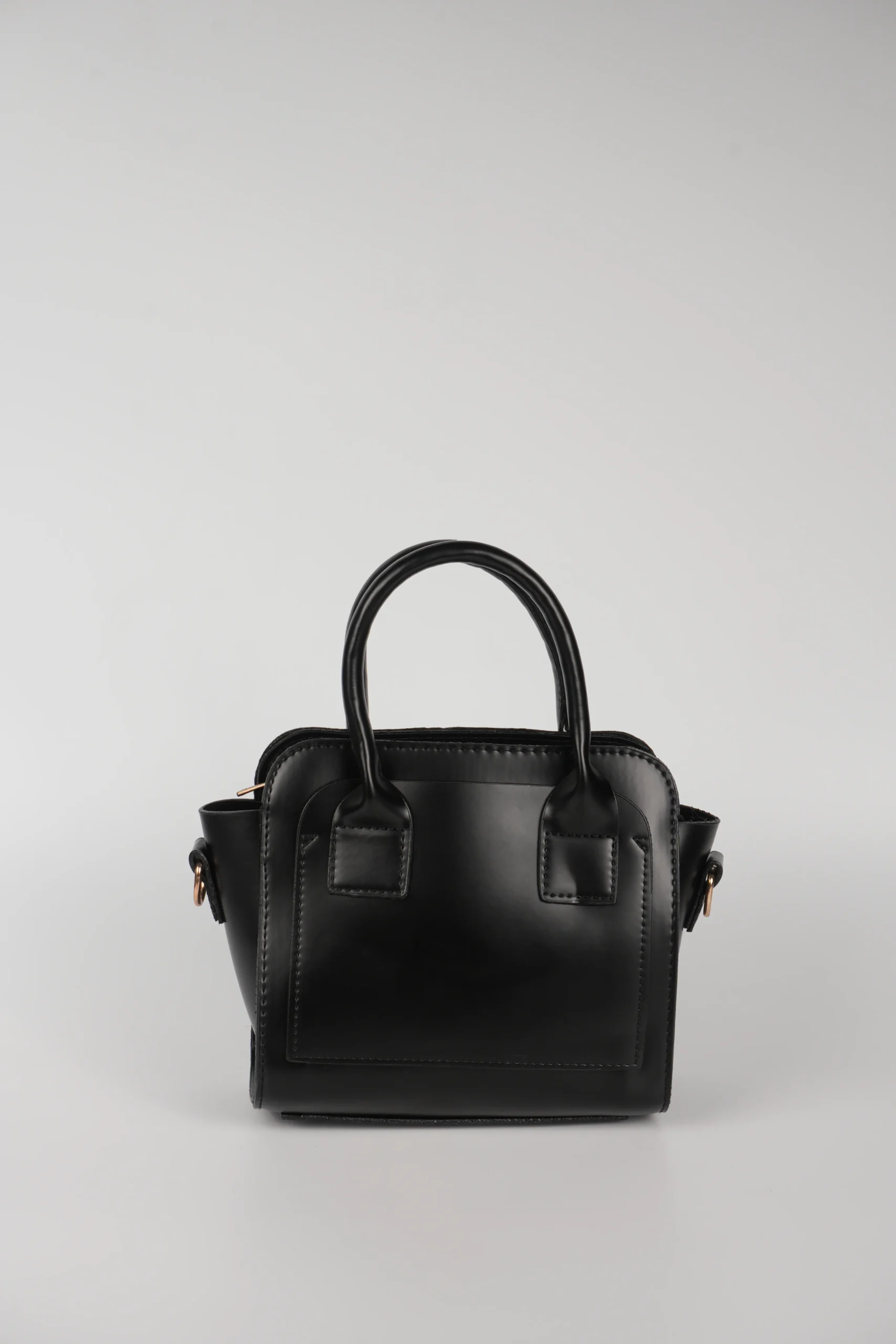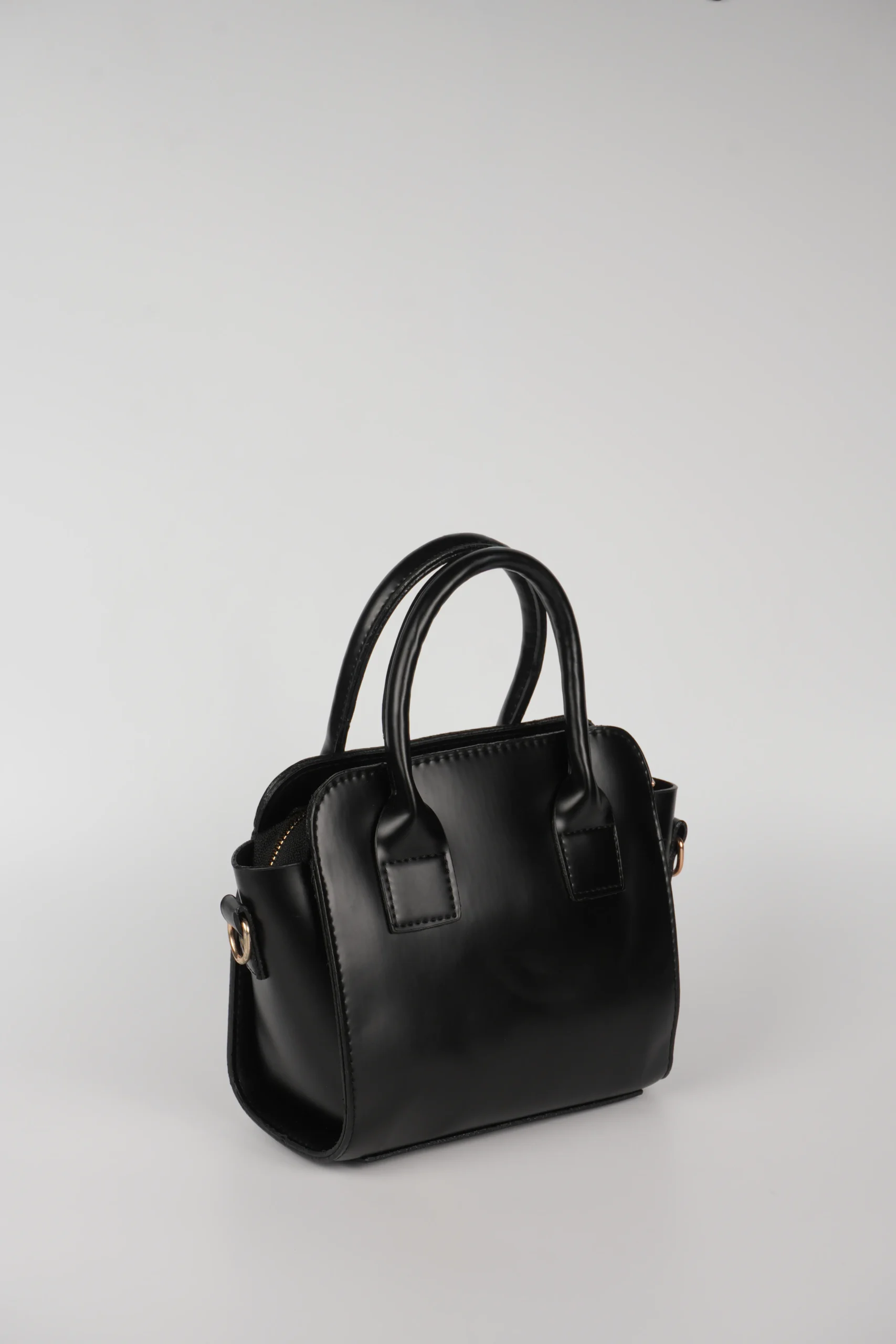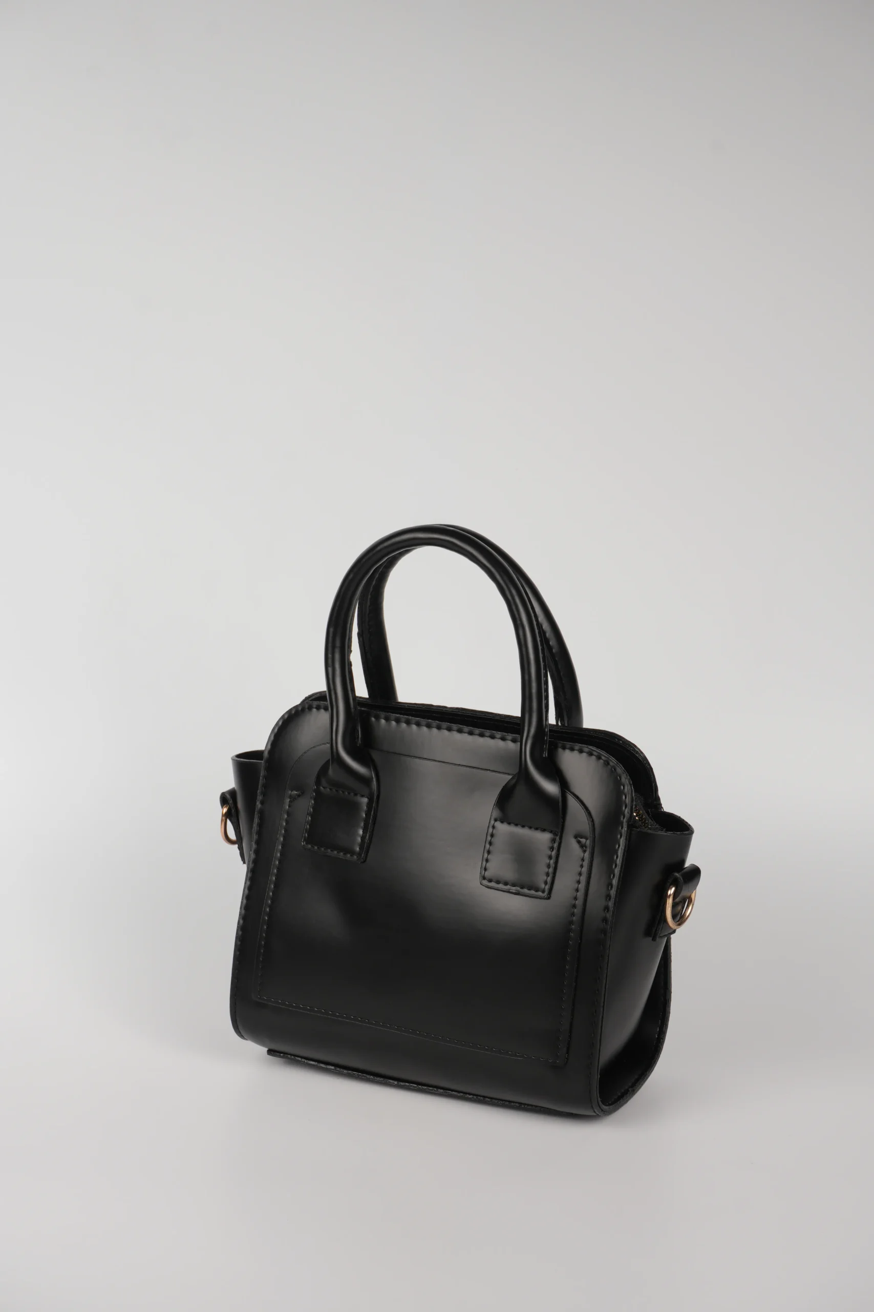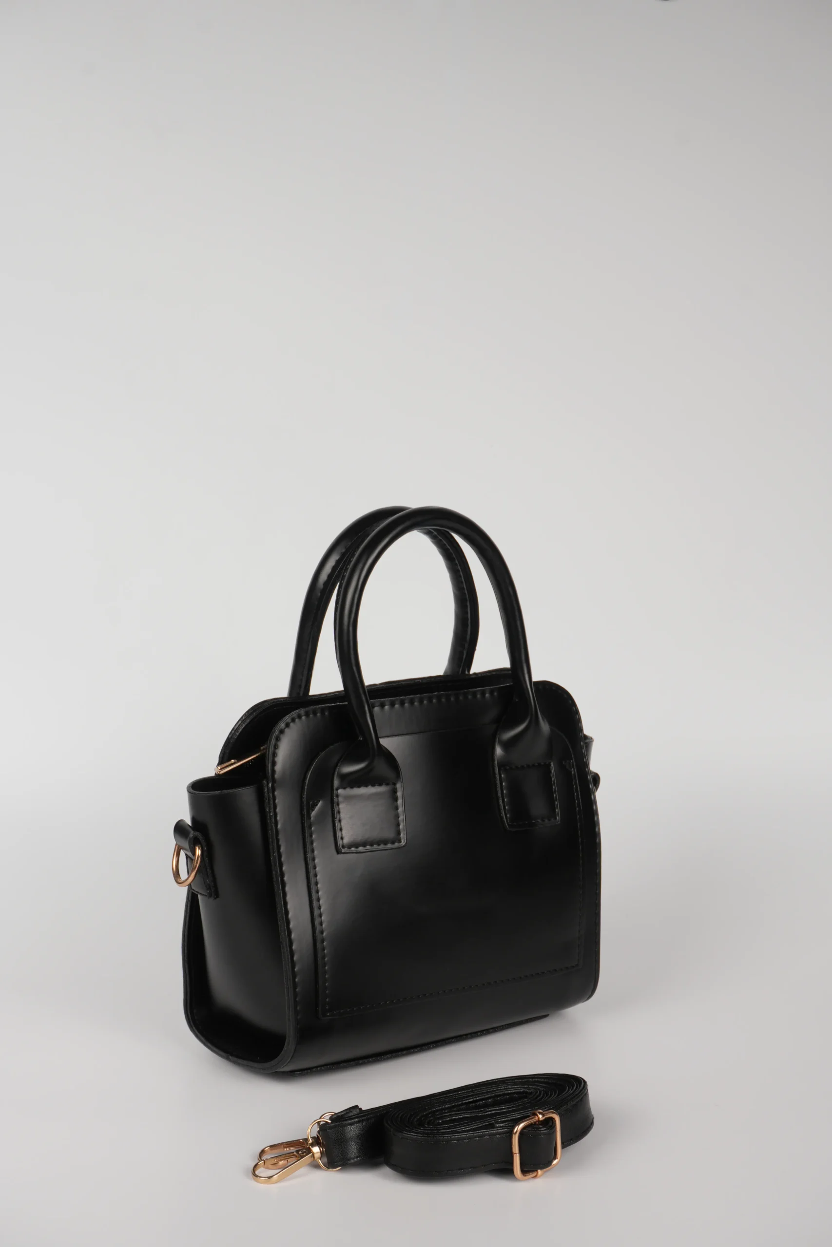 Minimal ve zarif tasarımıyla Şıklığı ve sadeliği bir araya getiren bu siyah el çantası, Kaliteli dokulu yüzeyi çantaya sofistike bir görünüm kazandırırken, Çanta içerisinde fermuarlı ana bölme bulunur. Bu sayede eşyalarınız hem güvenli hem de kolay erişilebilir şekilde taşınır.