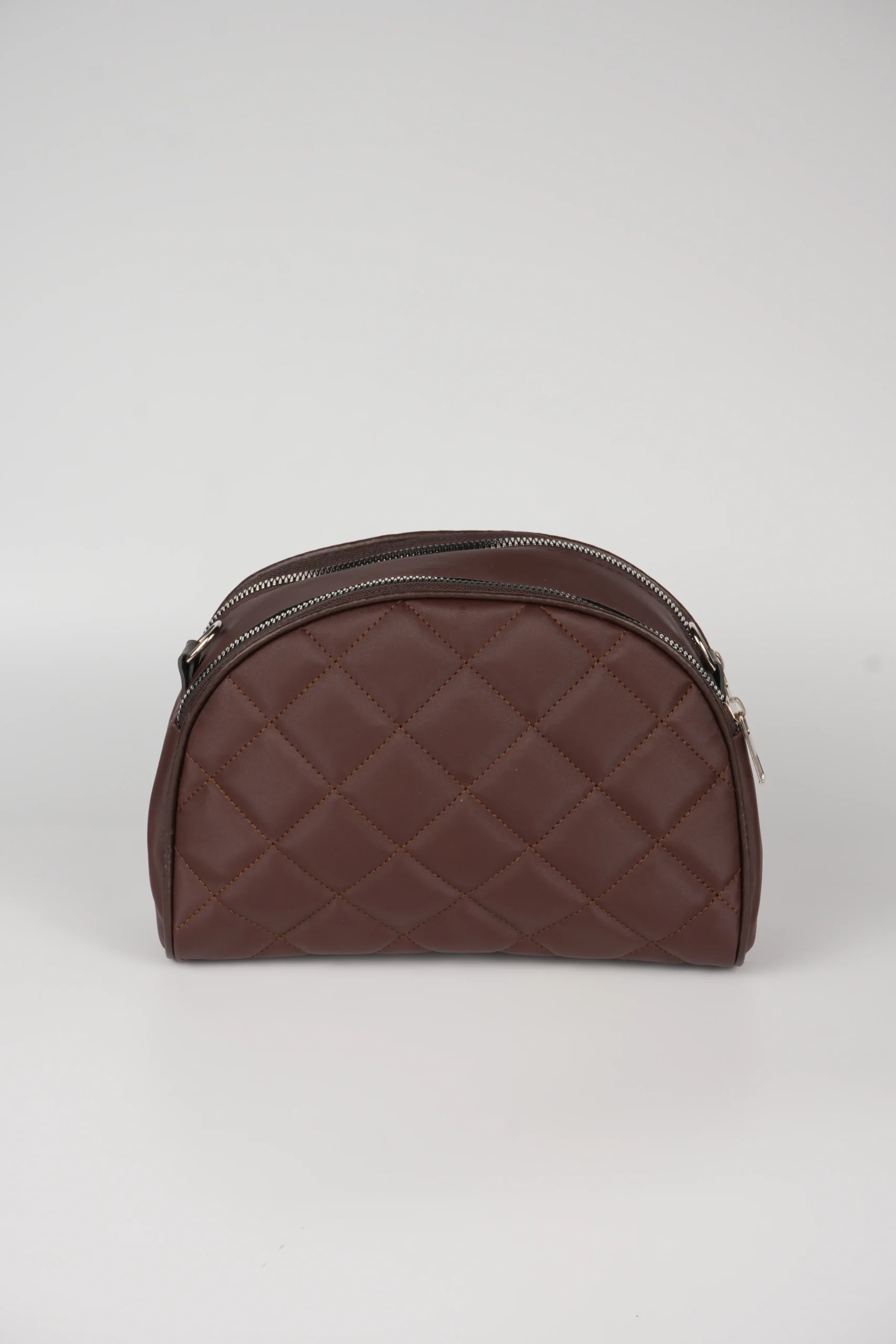 Kadın İki Gözlü Kapitone Desenli Çapraz ve Omuz Askılı Çanta