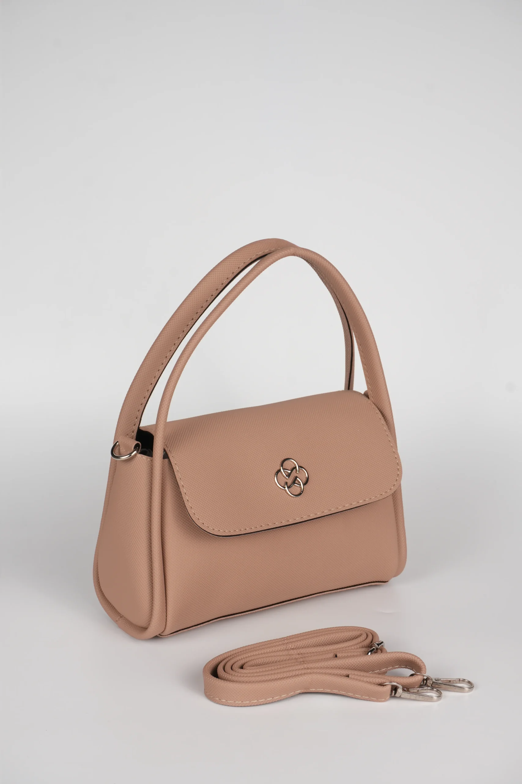 Modern Logo Detaylı Kapaklı Kadın El Kol ve Omuz Askılı Çantası