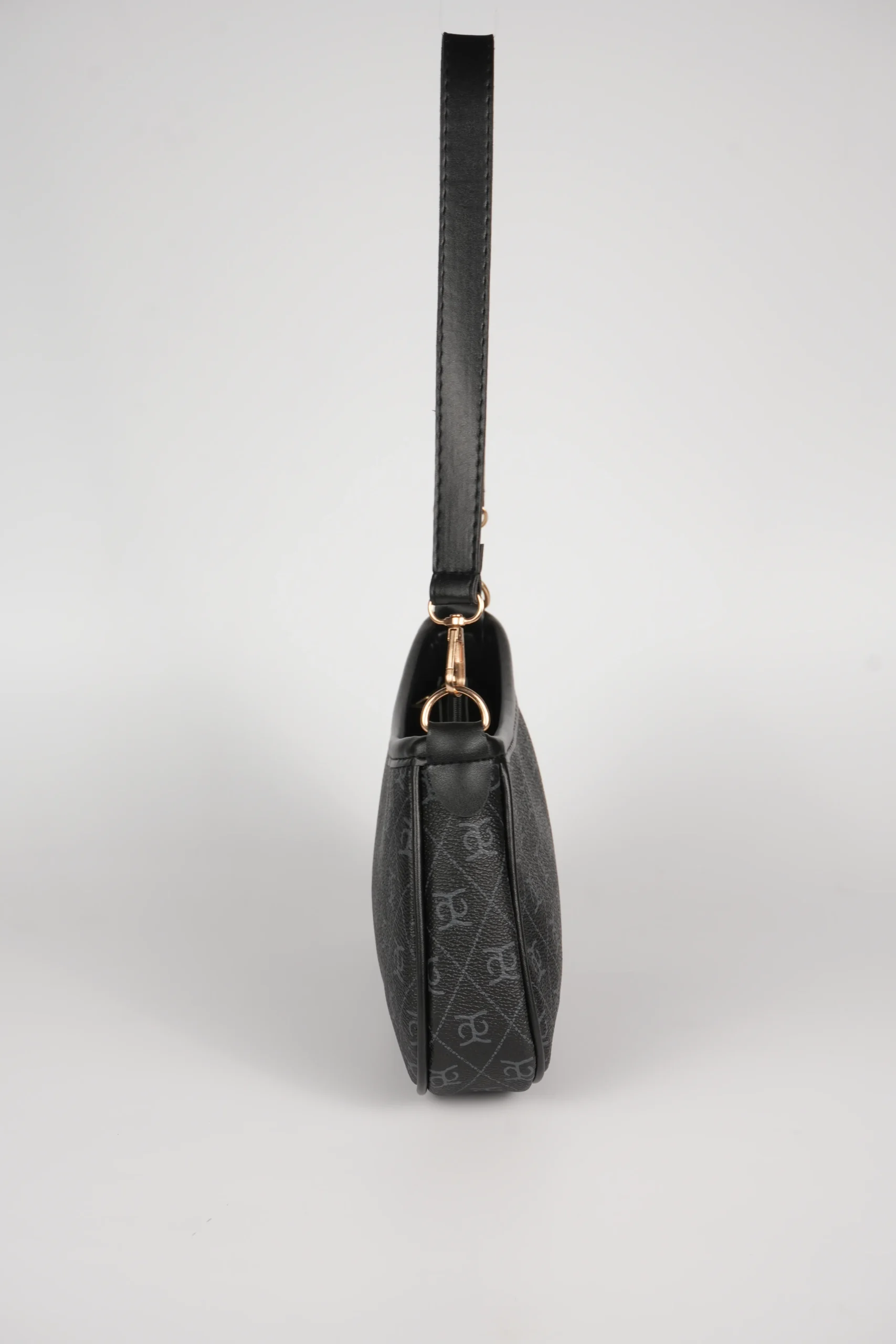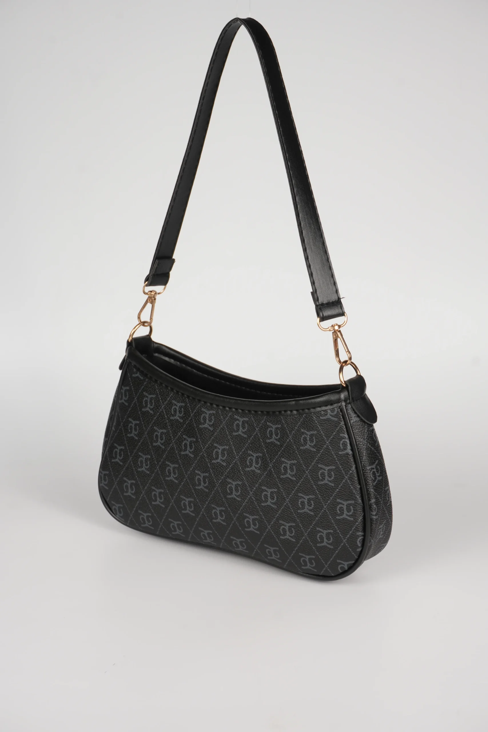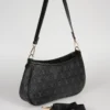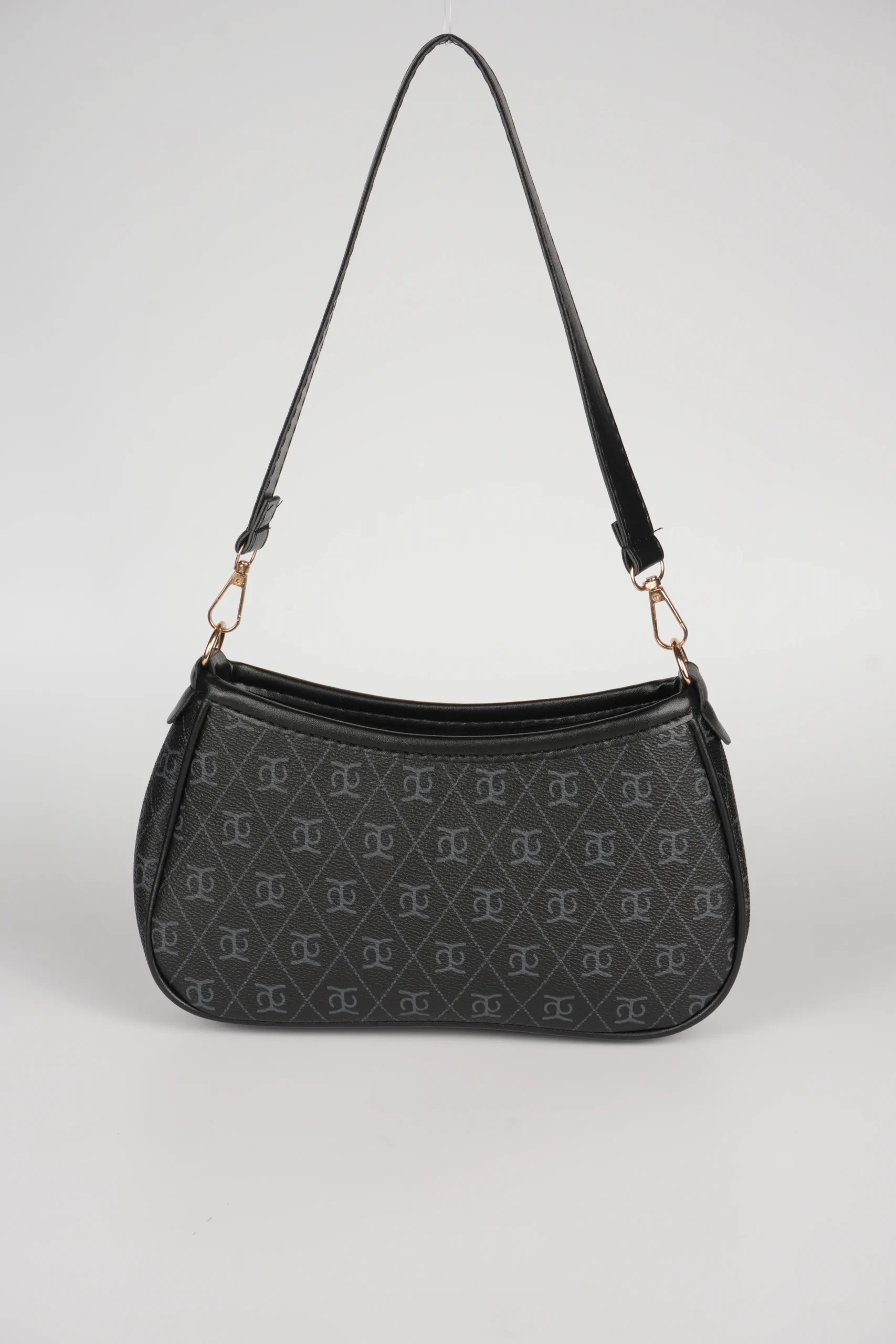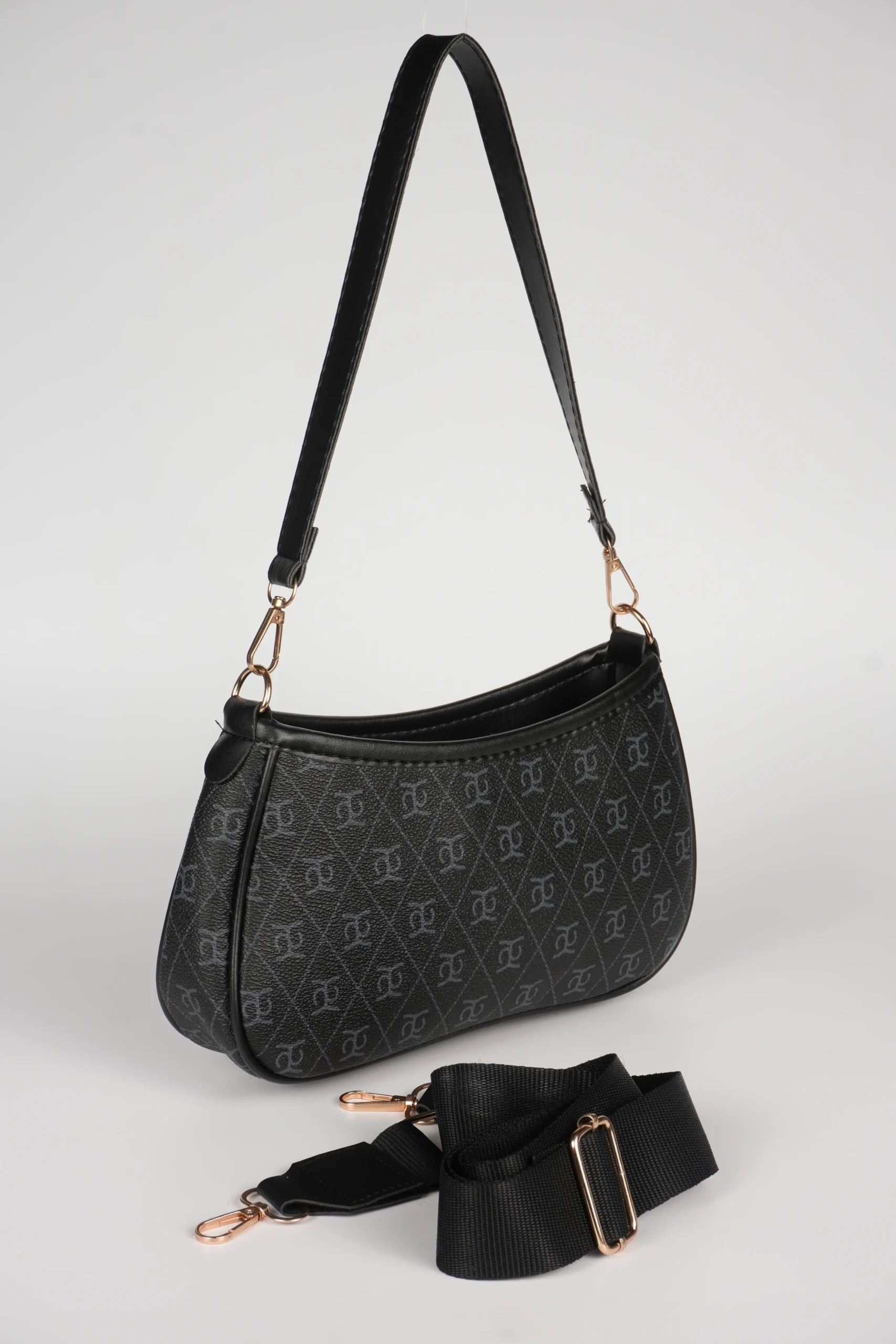 Zarif yarım ay formu ve monogram desenli yüzeyi ve minimal ve zarif tasarımıyla Şıklığı ve sadeliği bir araya getiren bu el ve omuz çantası, fermuarlı ana bölme ve Elde taşımaya uygun askısının yanı sıra uzun ayarlanabilir askısı ile ister çapraz ister omuzda kullanılabilir. Askılı omuz çantası, günlük kombinlerden özel davetlere kadar stilinizi tamamlar.